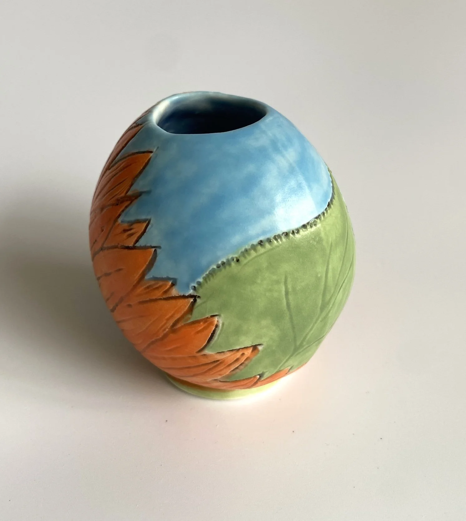 Bold, botanical, and bursting with colour—this mini vase is a fiery celebration of nature. Featuring a hand-carved echinacea design inspired by the vibrant 'Flamethrower' variety, it brings a burst of energy to any space. The rich glazes echo the striking tones of late-summer wildflowers, with warm, layered hues that stand out against its compact form.